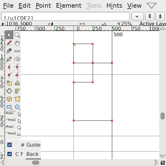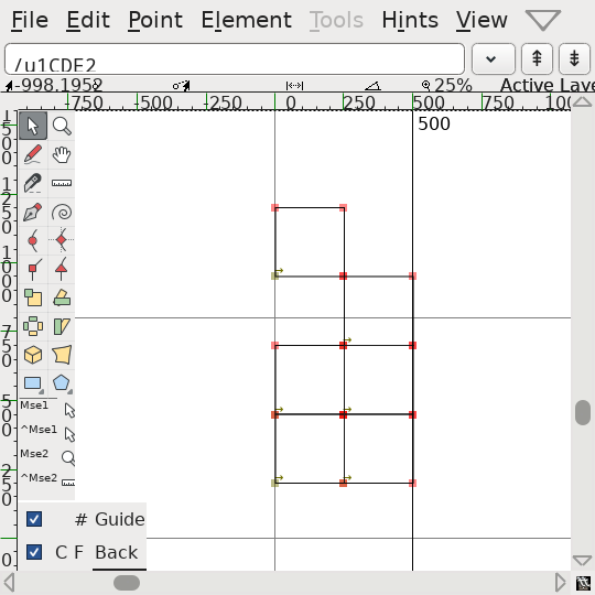 But yes, after correcting everything, the implementation resulted in a 4.2 KB font that worked no worse than Cascadia Code. That was okayish, I guess? Then I opened the file in FontForge and I noticed that there's a lot of duplicate anchor points.